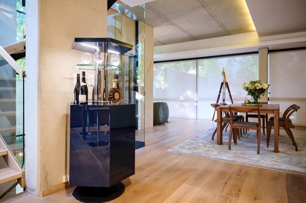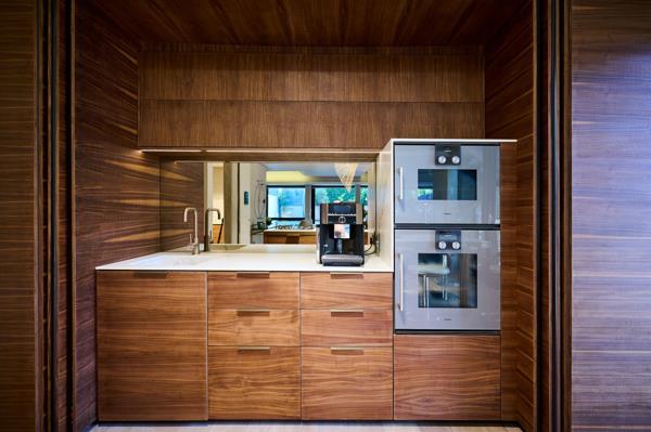The contemporary kitchen is a true showstopper, with its smart design, sleek integrated Gaggenau appliances and uniquely fitted wine cooler, leading out onto a large balcony with a built-in server and gas braai, overlooking the serene koi pond.