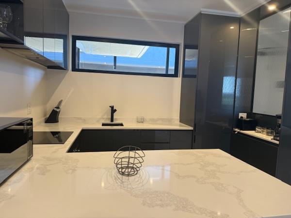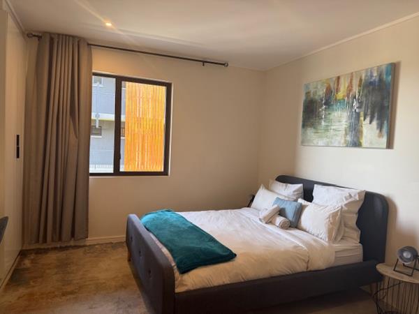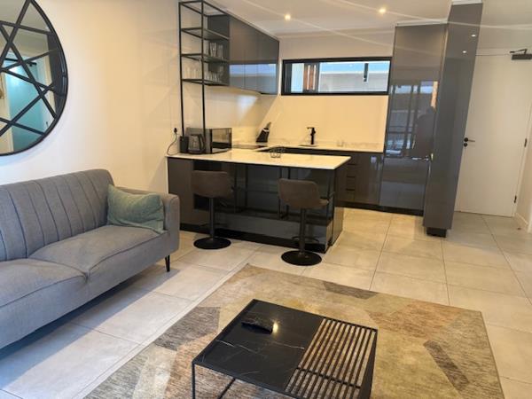 An expansive entrance hall flows into an open-plan kitchen with Caesarstone countertops and space for two appliances. The bright lounge opens onto a private balcony, ideal for relaxing or entertaining. Unit currently on Air B and B