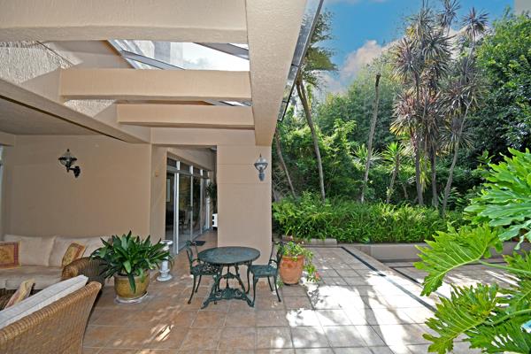 A grand entrance is created by the unique sun roof which can be opened as needed to allow air flow via the hydraulic mechanism. The residence has an elegant ambience with seamless flow from one space to another offering three generous reception rooms each with its own distinct charm. A built-in bar flows out to the under-cover patio, perfect for year round entertaining. The established, low maintenance private garden is a lush, green sanctuary surrounding the large swimming pool, offering an idyllic outdoor space to enjoy the tranquil setting.