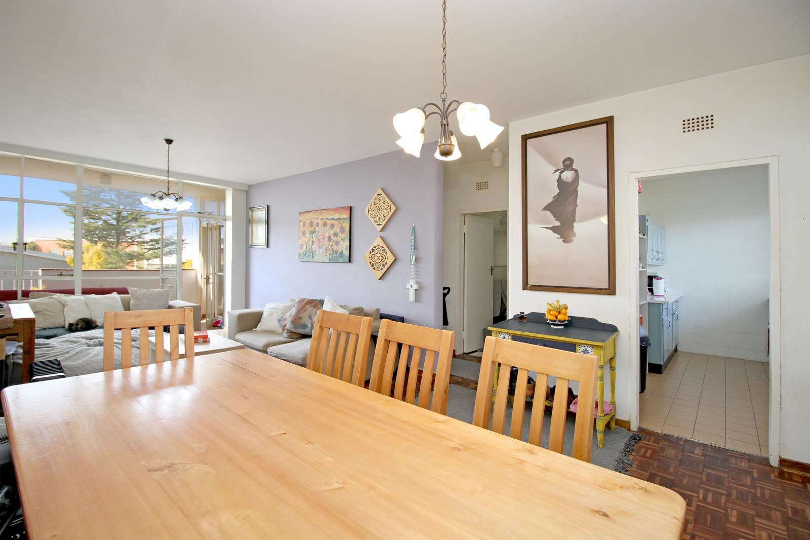 3rd floor, spacious, sunny open plan living areas, parquet flooring, kitchen has piped municipal gas (to the complex). The large living spaces lead to an open balcony with views over Illovo. Large bedroom with floor to ceiling glass windows allowing in maximum light. Bedroom leads to open balcony, 1 bathroom plus separate guest cloakroom.