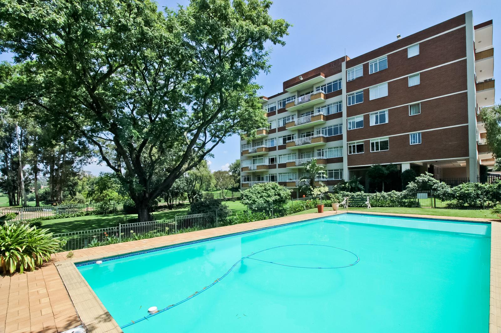 Light and bright with parquet floors, & high ceilings. Huge open plan living/dining spaces leading out to open north facing balcony, as well as a wanderers golf course views from your back windows. Well equipped kitchen with municipal piped gas. Huge north facing master bedroom, 2nd large north facing bedroom, plus 3rd bedroom. There is a full bathroom plus a 2nd bathroom with a shower, toilet & vanity. Apartments serviced twice weekly - included in the levy. Manicured communal gardens, sparkling pool, basement plus visitors parking, and 24 hour manned security.