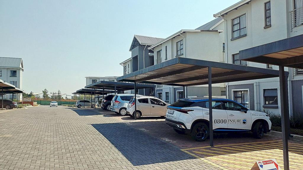 The unit has two carports and a covered patio with a fitted braai. The estate features a variety of amenities to improve the quality of life for the residents, including parks, playgrounds, a gym facility, a swimming pool, and a restaurant.