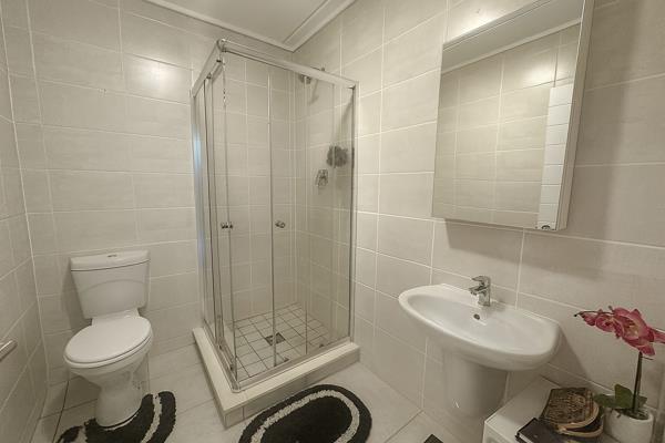 The open-plan design maximizes natural light, with the kitchen and living area seamlessly flowing out to a private patio ideal for morning coffee or evening sunsets. Both bedrooms are well-sized with built-in cupboards, while the sleek bathroom is fitted with contemporary finishes.