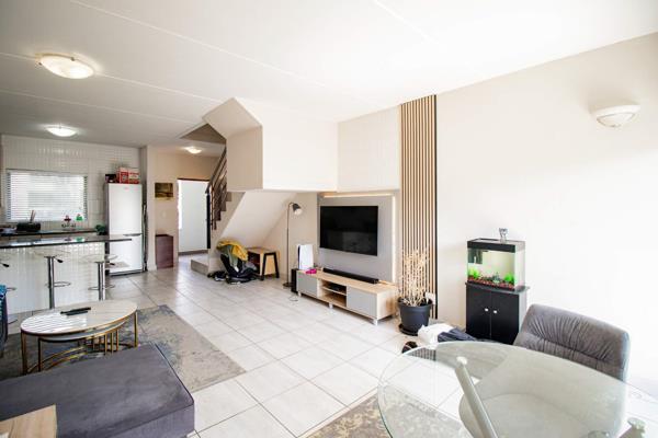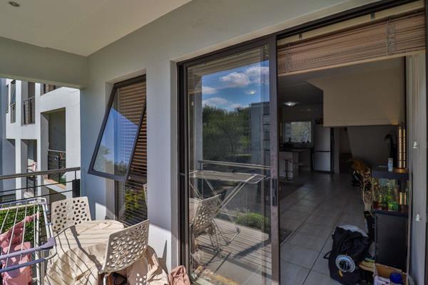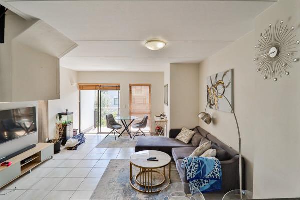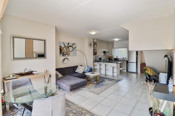 The kitchen flows seamlessly into the living area, which offers space for both a dining area and a cosy lounge, opening onto a private, covered balcony.