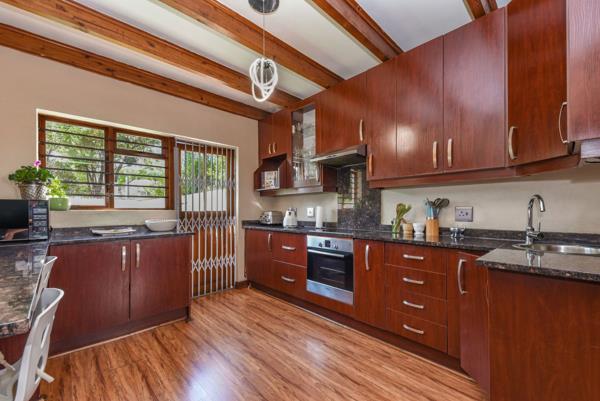 The open plan layout connects the kitchen, dining room and living area. Creating an inviting space for family gatherings and entertaining guests. The kitchen is a chefs delight and has a separate scullery for added convenience.