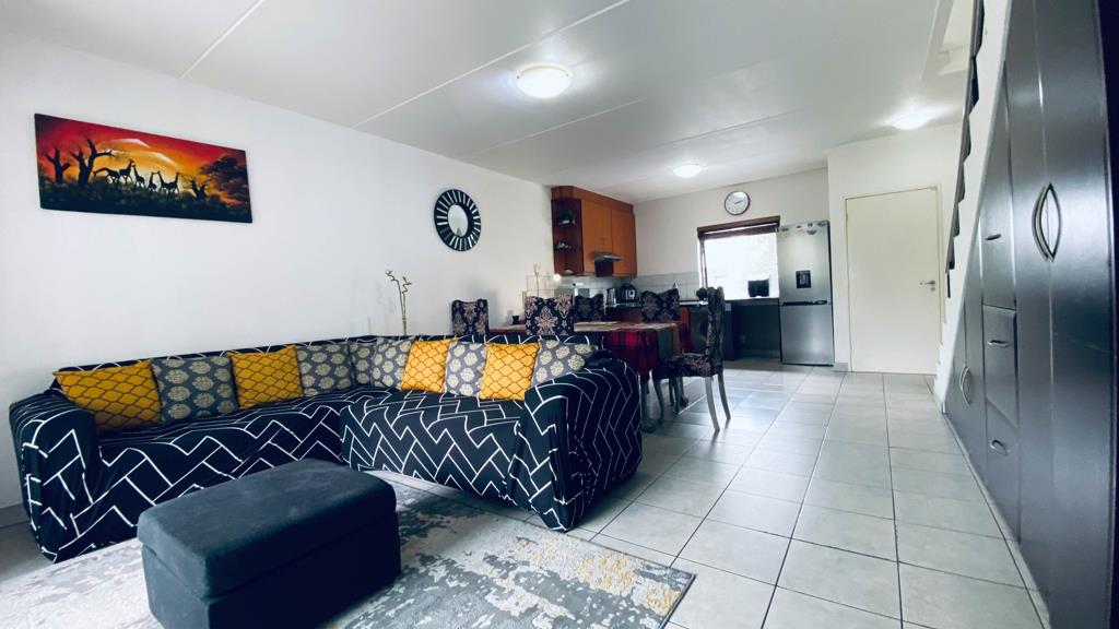 This stylish and spacious townhouse offers a modern open-plan kitchen, dining, and lounge area, along with two well-designed bedrooms and two contemporary bathrooms. The gourmet kitchen features granite countertops, stainless-steel finishes, and ample storage. Upstairs, the master suite includes an en-suite bathroom, and both bedrooms have built-in wardrobes.