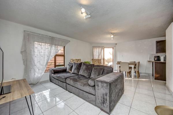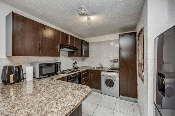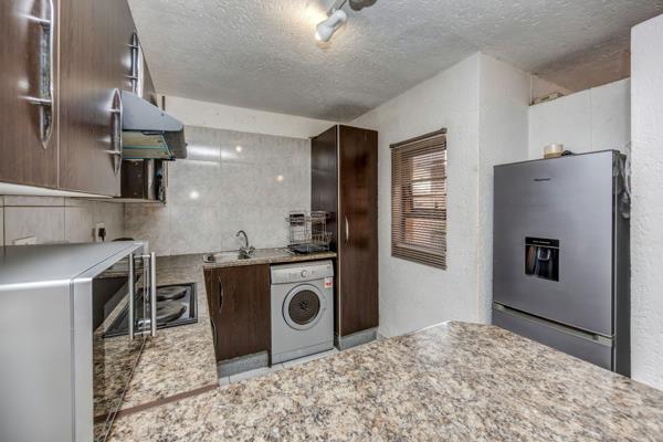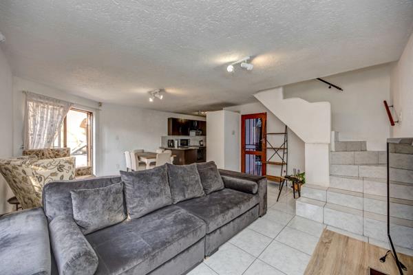 Entering this duplex townhouse, into the open plan lounge/dining area and kitchen with stone tops and space for 2 appliances, leading to the walled garden through sliding doors and to the tandem garage, with small patio out back and wash line. Security gates on both front and back doors. There is wifi. This has also just been newly painted.