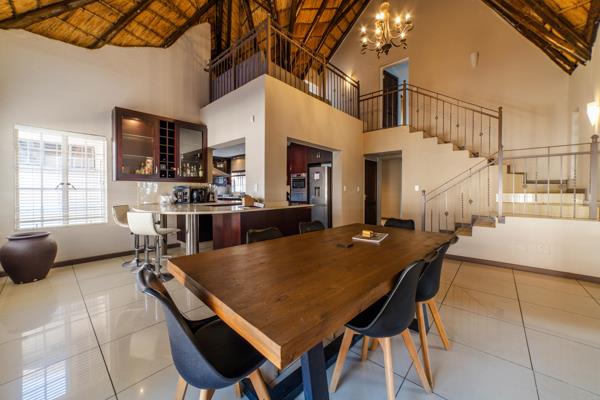 Step outside to a spacious, covered entertainment patio that overlooks a sparkling pool and a private, pet-friendly gardenideal for weekend braais, kids playtime, or simply unwinding in peace. Additional highlights include a double garage, open parking, and two convenient external bathrooms. The home also boasts a second lounge, a charming thatch roof, and a balcony that adds to its unique appeal.