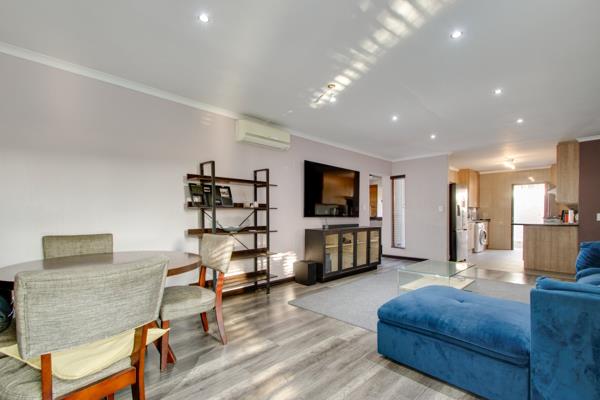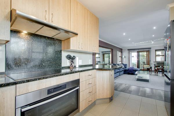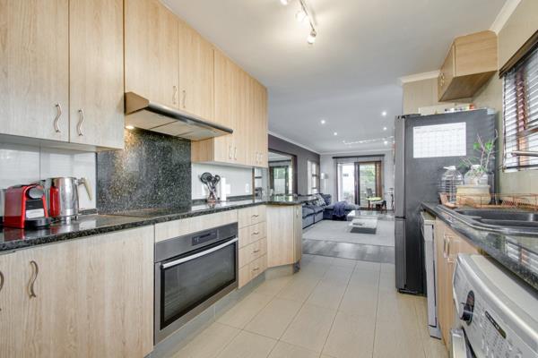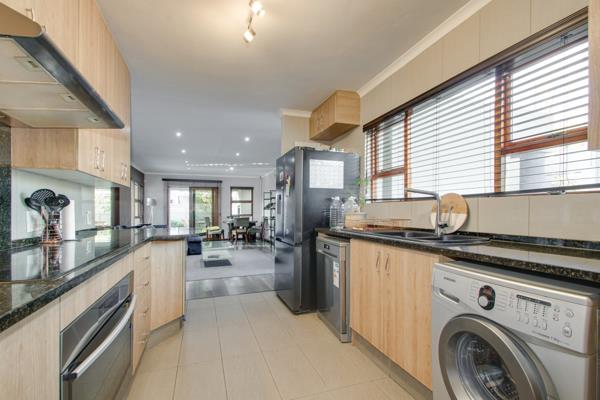 A welcoming entrance sets the tone for whats to come a residence thats loved and well taken care of. Open plan living spaces that flows out onto the covered patio which feature a built-in braai and overlooks the swimming pool and spacious garden- a hard to come by lawn space, an area for children to run around. The kitchen is of a good size and offers granite countertops, breakfast bar, electric stove and oven and extractor fan, double door fridge space, under counter space to accommodate two appliances, a sizeable pantry cupboard, plus ample built-in cupboard space. The airconditioned family lounge is a fabulous spot to relax and unwind.