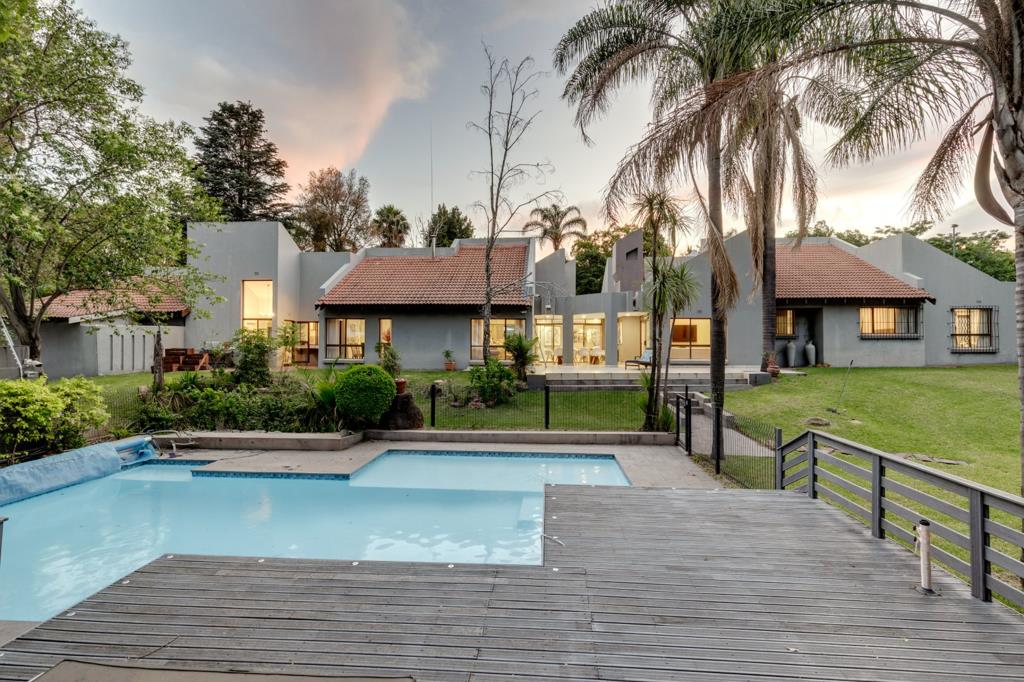 Here is a great opportunity for development in a superb position within a boomed enclosure of Morningside Manor, close to local amenities and transport routes. 3966 sqm, Zoned Res 3/for 12 Units. The existing home offers great accommodation set in a treed Garden with a large Pool surrounded by a Deck with a Jacuzzi, Soccer Court, Trampoline and Boma for amazing entertainment for friends and family. Entrance Hall leads to the formal Lounge and Dining Room with a Fireplace that flows well to the Kitchen with breakfast dining area, Gas Hob, oven and Microwave. Built-in Bar opens to the Family/TV Room that leads out to the Patio, Garden and Pool. Guest Cloakroom conveniently situated. Main en Suite with outdoor Shower and walk-in Dressing Room. Spacious 2nd and 3rd Bedrooms with built-in Cupboards, 4th Bedroom or Study. 2nd Family Bathroom. 4 Staff Bedrooms, with Kitchenette and Bathroom. 2 Double Garages, plus lots of off-road Parking. 40KVA Generator on site, 3 geysers, Water Tank, Irrigation System. Great security.