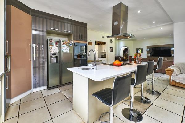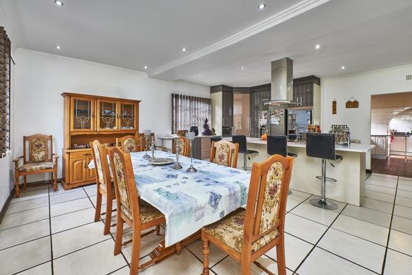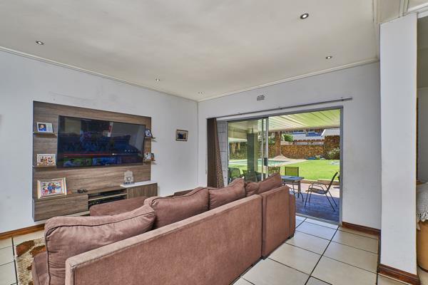 Offers from R3 399m. Location, location, location - spacious 5 Bedroom family home. Entrance hall to open plan lounge, dining room and separate family room lead to covered entertainers patio, solar heated pool and sizeable garden with built-in boma with seating and braai area. Modern open plan dine-in kitchen with gas hob, separate second kitchen with scullery perfect for home catering or the master chef. 3 North facing bedrooms, 2 fully renovated bathrooms (mes with walk in dressing room). Separate entrance to 2 bedroomed self contained cottage/second home plus covered parking. Staff accommodation. Double automated garage. Inverter, 8 solar panels and solar geyser complete the picture. Situated in an access-controlled and patrolled neighbourhood with streetlights. Walk to the Ullman Park Recreation Centre and enjoy the community spirit. Asking R3 599m.