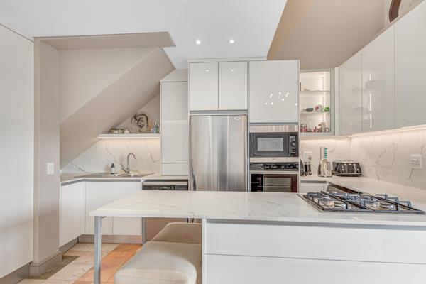 Step inside and be captivated by the world class, interior designed space, boasting a double volume living area with a seamless open plan lounge and kitchen. The state-of-the-art kitchen features a gas stove, high end appliances and gloss white cabinetry, flowing onto a spacious patio/balcony with spectacular top-floor views.