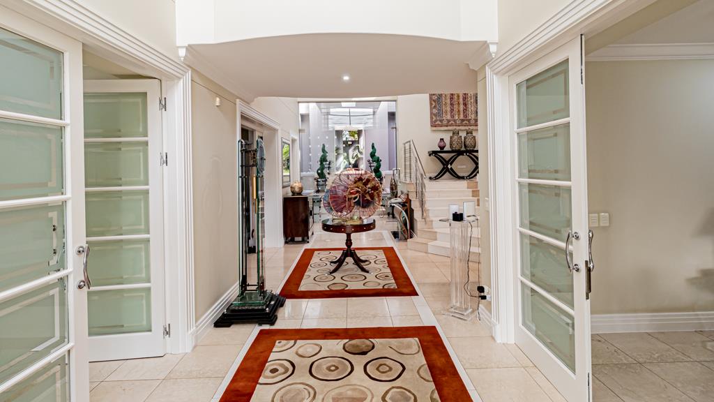 This 650 m2 double-story home on a 1 020 m2 double stand offers abundant natural light, space, and elegance, in a top 24hr guarded complex on West Road South.