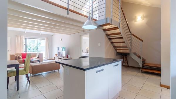 Spacious 122m2 open concept living with innovative design just perfect for today''s lifestyle. King-size bedroom with ample wardrobes and walk in cupboard opens to the terrace. En suite bathroom with both bath and shower, marble vanity. Generous light and breezy lounge features lofty double volume ceilings and leads to the terrace - perfect for sunning or starlit dining with its pretty leafy outlook. The skylit semi - open loft area with cupboards and bathroom make this a versatile space for a 2nd bedroom / home office. Appealing kitchen has granite tops, lots of cupboards, centre island and a separate laundry ''room'' and overlooks the lounge and terrace area. Guest cloakroom. Outside storage room. 2 Parking bays. Attractive pool area. Lift in complex.
