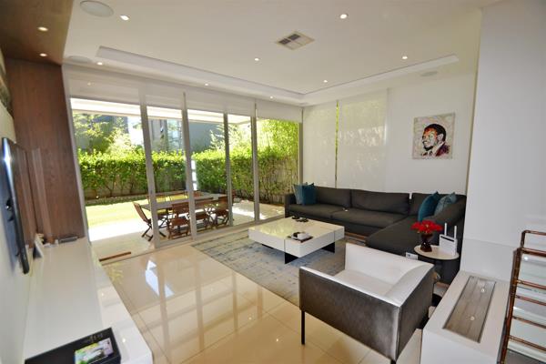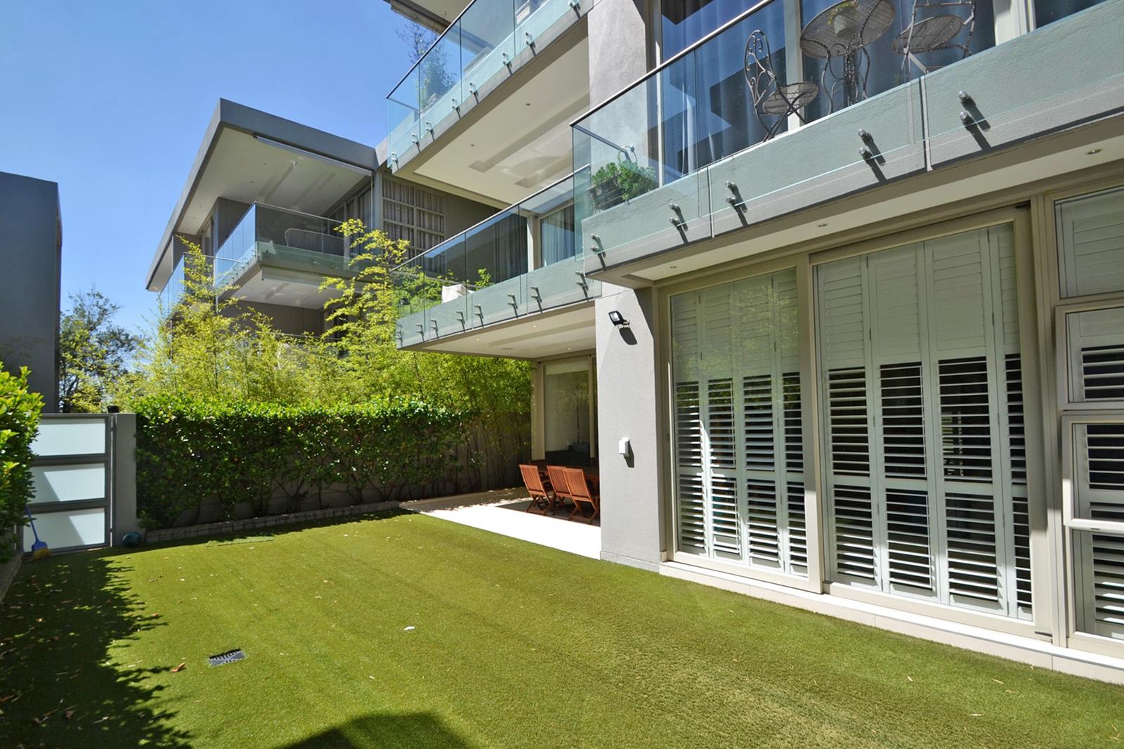 Hi-tech, exceptional apartment with a large garden in the quietest part of Morningside but close to all amenities. 2 spacious bedrooms (both en-suite), central air-conditioning throughout, gas from complex, huge lounge and dining room, and small, open-plan study / office. 2 basement parkings and a storeroom. Visitor''s parking.