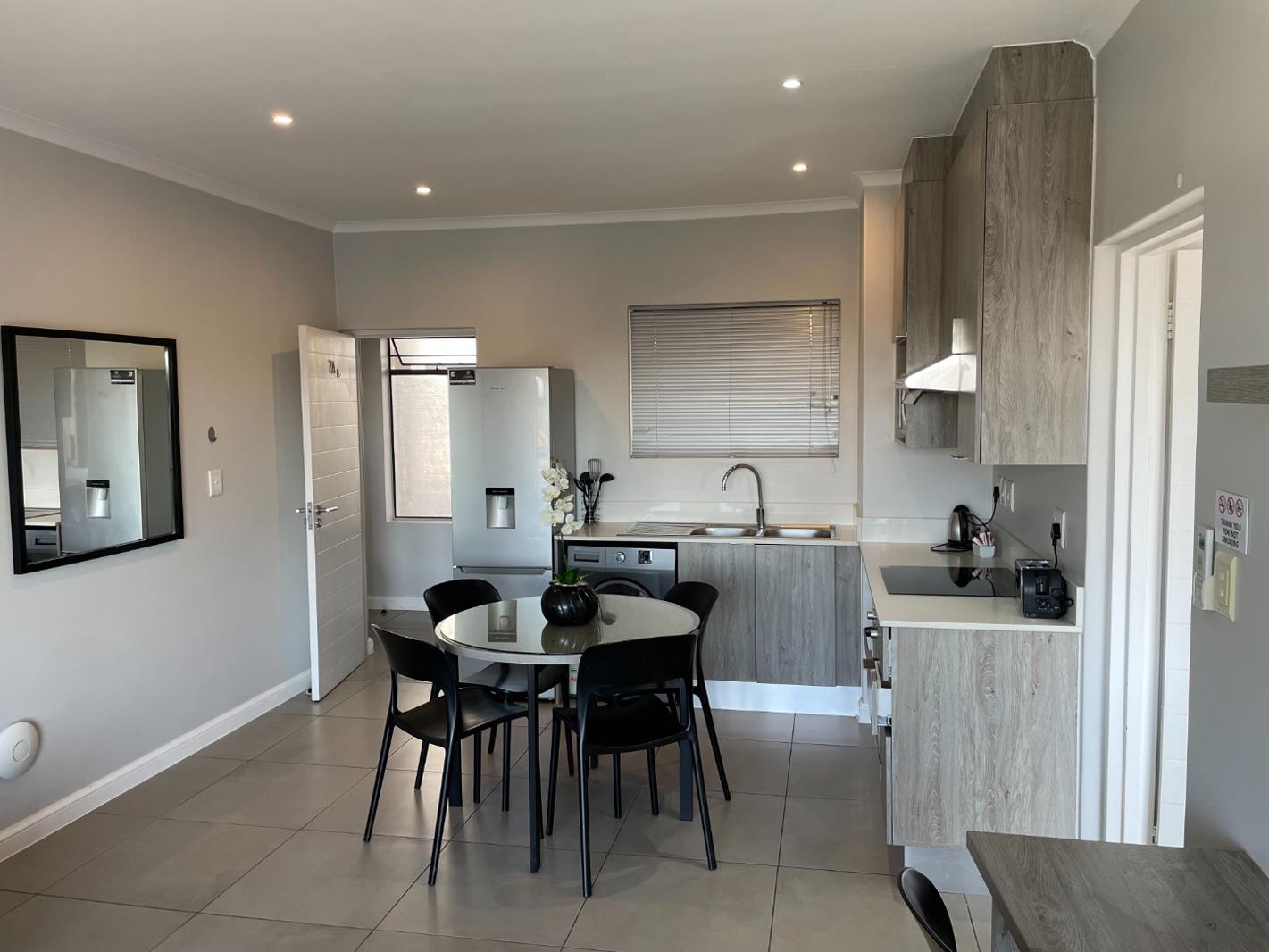 Step into this modern 85 sqm apartment, designed for seamless open-plan living. The contemporary kitchen boasts stylish grey cabinetry, white countertops, and integrated appliances including a fridge with water dispenser, washing machine, oven, hob, and microwave, making meal preparation effortless. The adjacent dining area flows into a comfortable lounge, all featuring sleek tiled flooring and recessed lighting, creating a bright and inviting atmosphere. Air conditioning ensures year-round comfort, while sliding doors enhance the indoor-outdoor connection.
