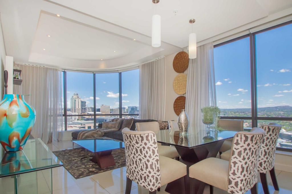This stunning apartment has the most breath taking views as it is located near the top of the Sandton Skye building. There is a state of the art gym, communal pool area and great security. You are walking distance from Sandton mall and in the main hub of Sandton.