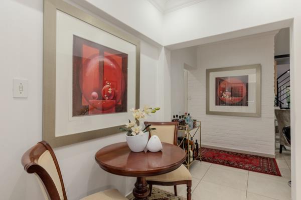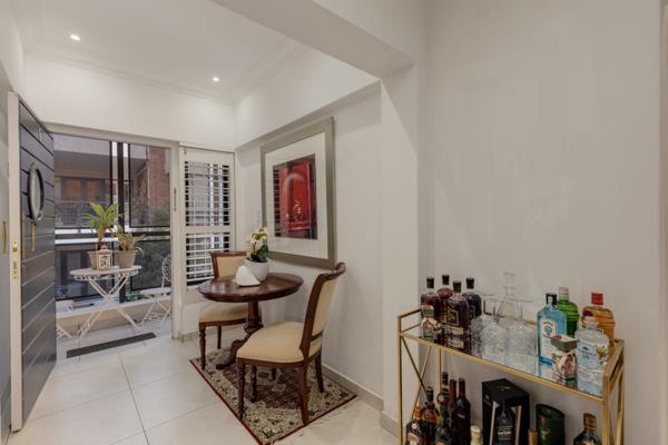 What an opportunity to acquire a beautiful, completely renovated apartment in the best position in town, close to the Sandton CBD and all local amenities. It is perfectly situated in the building overlooking trees and the development is on a road that closes after 7 in the evening, adding to the security and tranquillity. Set on the 2nd floor this 137sqm, 2 Bedroom, 2 Bathroom home offers style and sophistication with beautiful finishes including shutters on the windows, not a thing to do. The entrance opens to the easy flow of the open plan Lounge and Dining Room that leads out to the spacious covered Patio overlooking the trees. Lovely Kitchen decorated in a soft pallet with counter service or dining area for easy entertaining. Main Bedroom en Suite with a tranquil energy overlooking the trees also opens to the Patio. Spacious 2nd Bedroom with built in cupboards. 2nd Bathroom/guest cloakroom. Spiral staircase leads to an upstairs study/gym, which in turn opens to a vast rooftop terrace with a covered entertainment/braai area and treetop views. Pool in the complex for those hot summer days. 2 Parking bays and 24 hours security on arrival. The architectural design of this complex is unique and will stand the test of time as will an acquisition in this wonderful position. A perfect lock up and go or home for those scaling down who want to have peace and quiet yet be close to it all, or those working in the Sandton CBD, it doesnt get better than this.