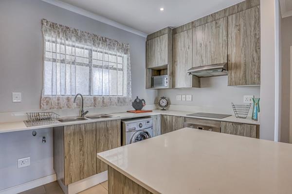 The layout is spacious with an open-plan living area that leads to a well-equipped kitchen and a private outdoor patio.