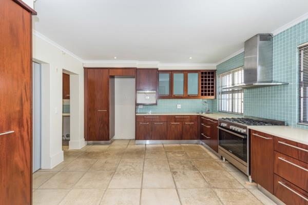 Gourmet granite-topped kitchen with gas hob, separate scullery, and space for appliances