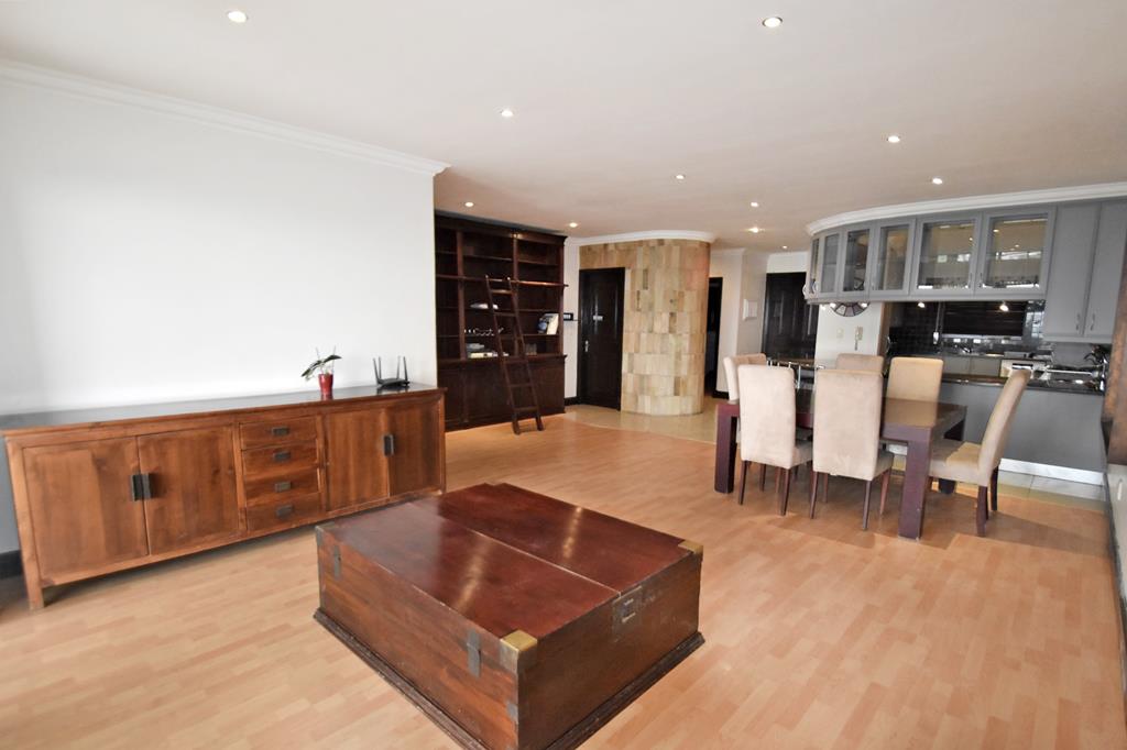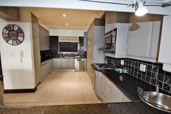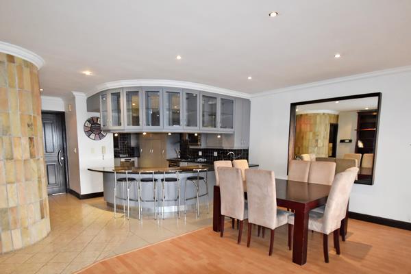 Spacious, 3-bedroom, furnished apartment centrally located in the Sandton CBD. Large, modern kitchen with 3 integrated appliances and loads of cupboard space as well as granite tops.