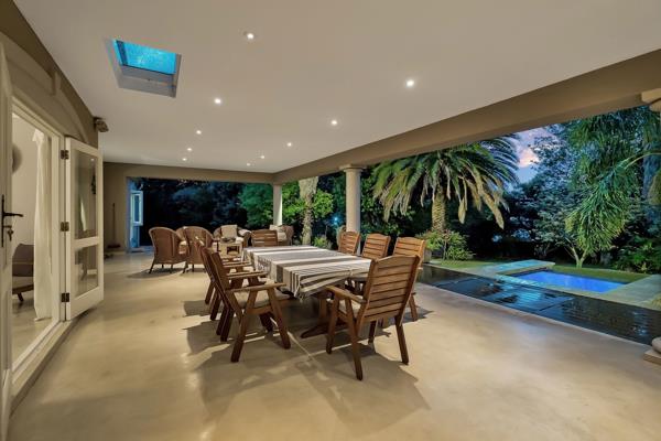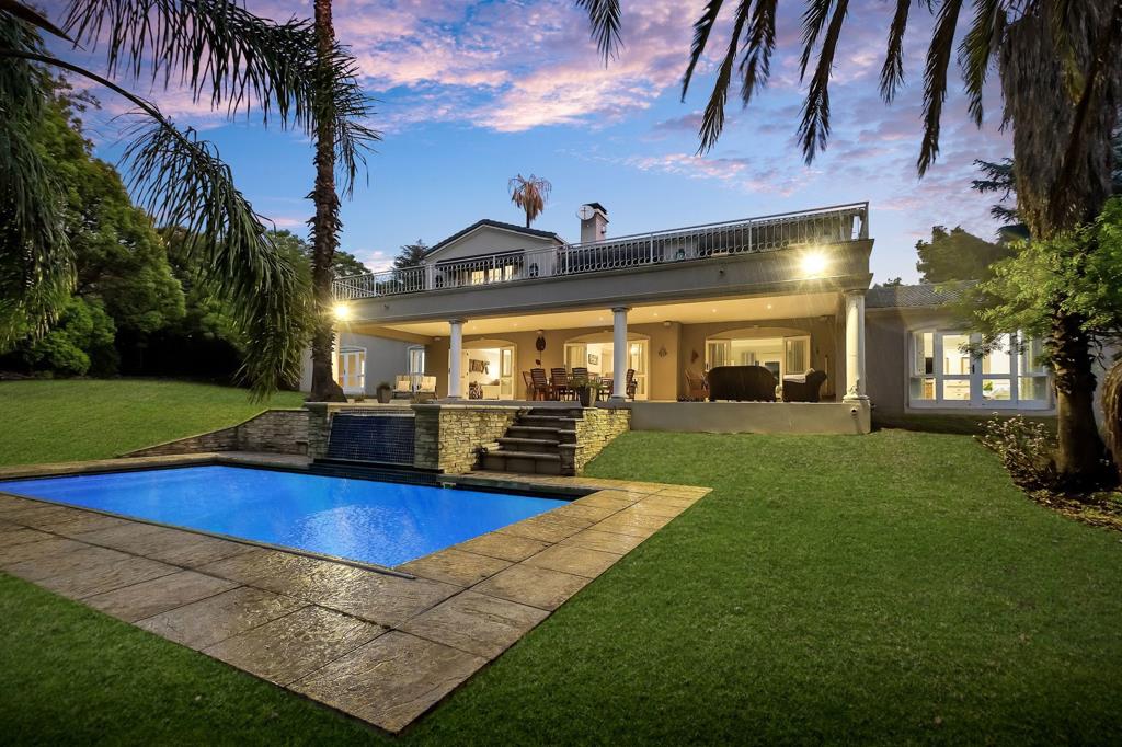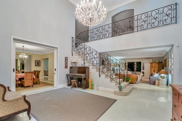Elegant fluid lines characterise the style and ambience of this delightful family home set in a superior position within a strictly guarded boom. . Inviting offers from R7 999 000. Asking R8 999 000. Theres an art to combining classic elegance whilst still maintaining the feeling of a home. This stylish abode has done just that! It whispers entry though an elegant double volume entrance hall, with gorgeous chandelier - you immediately feel you are somewhere special. Beautifully appointed with exquisite finishes, expansive recreation rooms that lead out to the massive entertainers patio overlooking the feature pool (with Jacuzzi) and rolling gardens (3983m2), this is it!