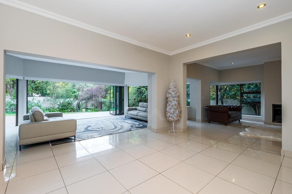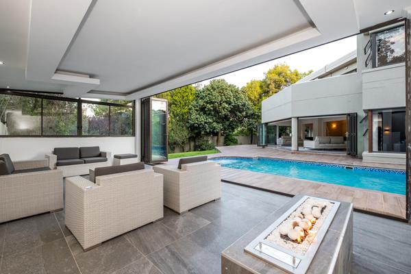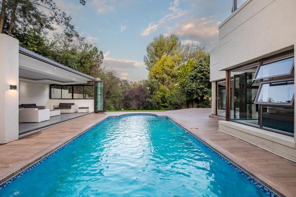 Step inside this wonderful home to find a sprawling interior, boasting vast open-plan reception spaces, including dining and two lounges, one adorned with a cozy gas fireplace. Stackable doors seamlessly connect these living areas to a recently renovated, tiled area enveloping the swimming pool, and extending to the newly built outdoor entertainment haven with a designer built-in gas fireplace, perfect for gatherings and special occasions under the sun-kissed sky. This outdoor entertainment room has full volume stacking doors, allowing you the option of keeping the space enclosed or opening it up to tiled area around the pool. A lush, spacious, grassy garden completes this outdoor oasis.