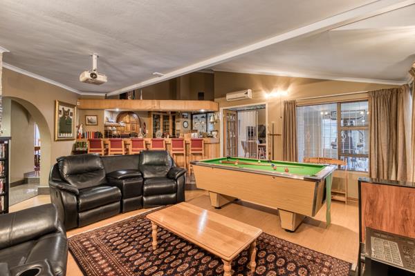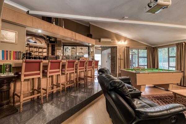 This magnificent home is situated down a pan-handle through a boomed and patrolled CAP area for extra privacy and peace. This immaculate modern contemporary home offers the ultimate in easy family living and if entertainment is top of ones list, this is definitely for you. The features are endless: a cinema room, a fully fitted bar leading out to an expansive undercover patio with a built-in braai, a floodlit tennis court, and a basketball half court, a heated pool, putting green, and beautifully landscaped garden with astro-turf for easy maintenance.