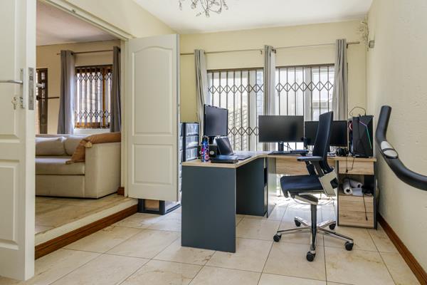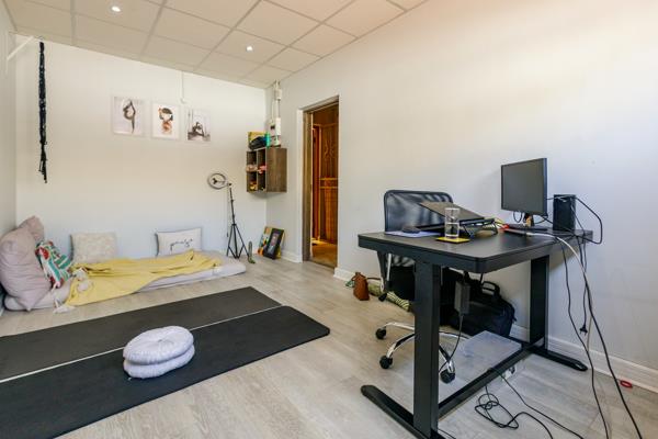 The open-plan lounge and dining area create a welcoming atmosphere for entertaining, flowing seamlessly into the second work-from-home space, which opens onto the tranquil intimate garden. Stepping out from the lounge you will find a unique covered patio, finished with custom stonework and murals.