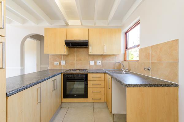 The charming kitchen greets you with a cozy breakfast bar, generous built-in cupboards, space for a single under-counter appliance, and a single-door fridge. Outfitted with a four-plate electric stove, extractor, and a built-in oven, this kitchen is designed to make meal prep smooth and enjoyable.