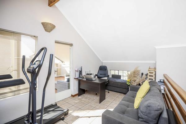 Ascend the solid wooden staircase to discover the versatile loft area, ideal for a work-from-home study or office. This space is perfect for those who need a quiet and dedicated workspace without compromising on comfort or aesthetics. The real magic of this apartment, however, lies in the rooftop balcony. This expansive area is perfect for outdoor entertaining, featuring a roof to protect your outdoor furniture and ensure year-round usability. Imagine hosting gatherings under the stars or enjoying a peaceful morning coffee with panoramic views.