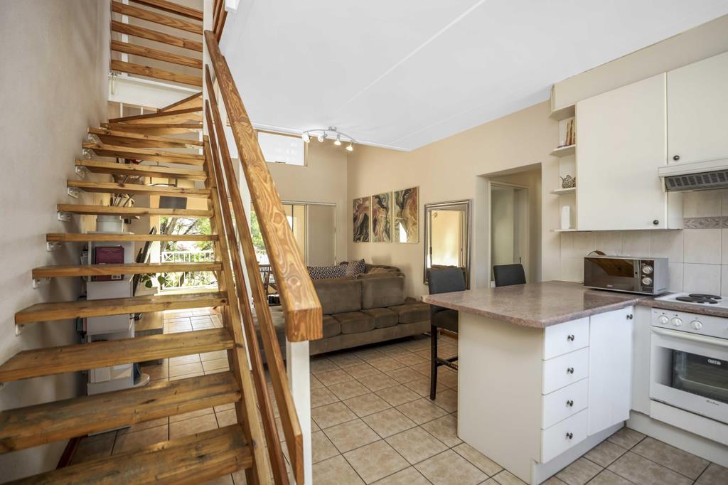 Discover the epitome of modern living in this exquisite double-storey loft apartment, designed to blend style, comfort, and functionality seamlessly. With its open plan kitchen and living area, this apartment offers a spacious and inviting atmosphere perfect for both relaxation and entertainment. The living area, featuring a wall-fitted skylight that floods the space with natural light, opens onto a cozy downstairs balcony that comfortably seats four for al fresco dining. The double-volume ceiling enhances the sense of space, creating an airy and bright environment.