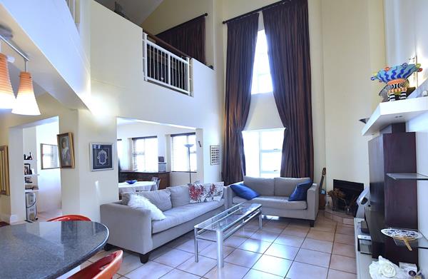 The lounge is with double volume ceilings and features tiled flooring, fireplace, and large windows which allow plenty of light to flow into the room