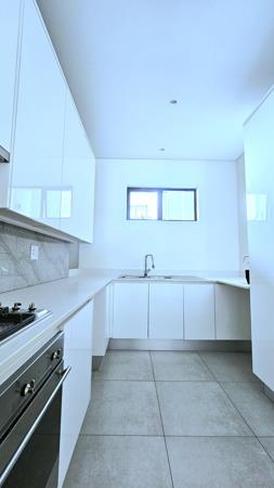 This home has an open-plan kitchen that is both sleek and practical. Featuring caesar stone countertops, a convenient breakfast counter, and high-gloss cabinetry.