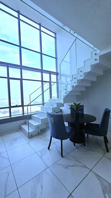 Step into elegance with double-volume interiors, a sweeping staircase, and a pyjama lounge that enhances the sense of space and comfort. The expansive layout boasts 27 high-quality finishes throughout, ensuring every detail reflects sophistication and timeless style. Floor-to-ceiling windows capture breathtaking city views, flooding the penthouse with natural light and creating an atmosphere of modern refinement.