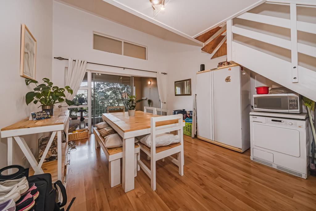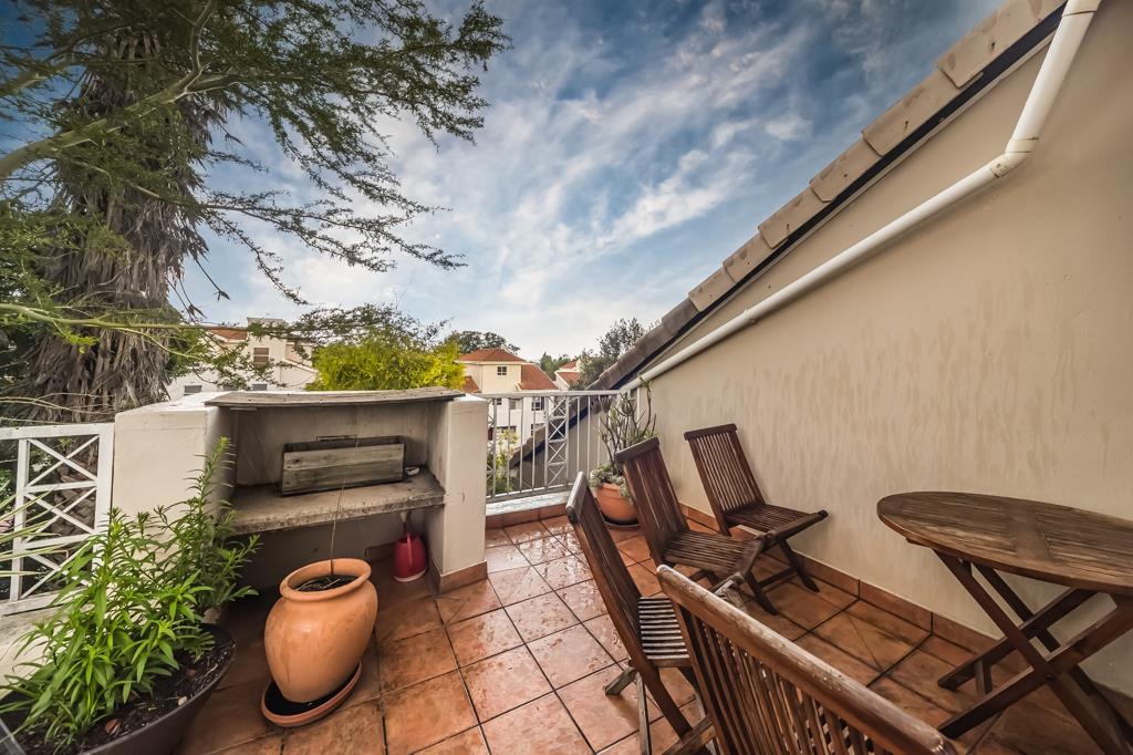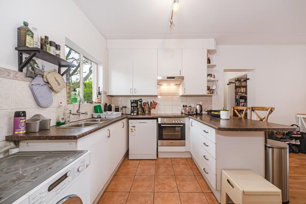The open-plan kitchen flows seamlessly into the dining and lounge area, leading out onto a private covered balcony. Upstairs, the loft offers the perfect space for a second lounge or work-from-home area, opening onto a large roof terrace with a built-in braai and spectacular views.