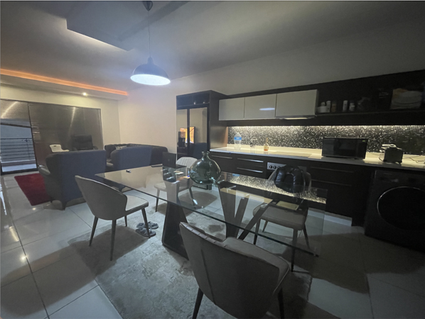 The interior of the apartment is well-appointed, with a modern and elegant design throughout. The open-plan living and dining area create a spacious and inviting atmosphere, perfect for entertaining guests or relaxing after a long day.