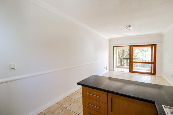 Kitchen leads to open plan dining & lounge area and out onto covered balcony.