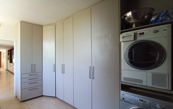 Outdoor living is well catered for with a private patio and a well-maintained garden, providing serene spaces for relaxation and entertainment. The property offers exceptional parking facilities with five garages, alongside practical amenities such as staff quarters and a dedicated laundry area, ensuring convenience and self-sufficiency. Pets are welcome, and residents can enjoy scenic views from various vantage points, adding to the property''s appeal.