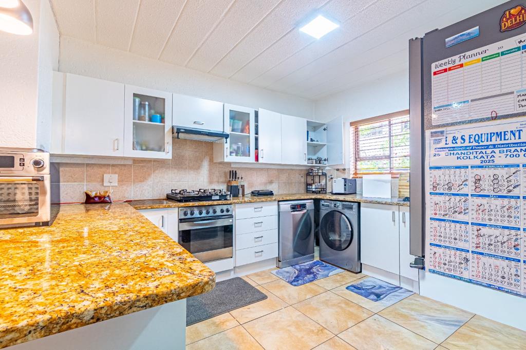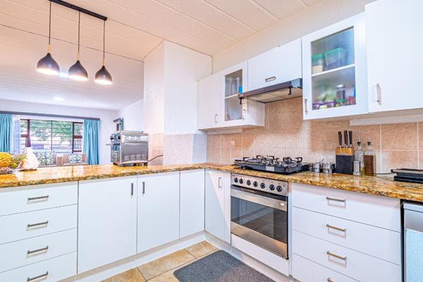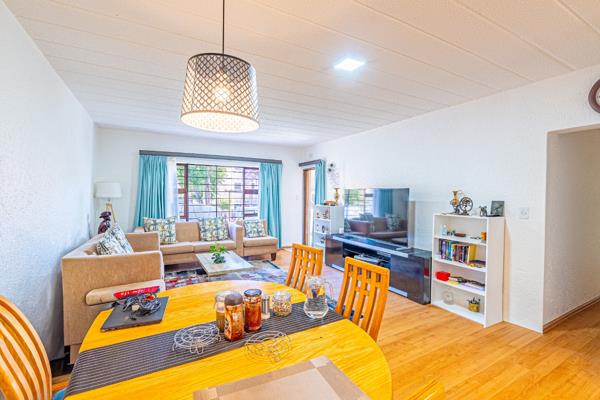 Discover this inviting 114 sqm multi-level residence, perfectly situated within a secure residential development in Morningside, Sandton. The property presents an appealing exterior with a ground-floor patio and an upper-level balcony, offering versatile outdoor living. Inside, an open-plan layout seamlessly connects the living and dining areas, featuring light wood laminate flooring and abundant natural light, creating a bright and welcoming atmosphere. The modern kitchen is a highlight, boasting sleek white cabinetry, granite countertops, and integrated stainless steel appliances including space for a dishwasher and washing machine, designed for contemporary living.