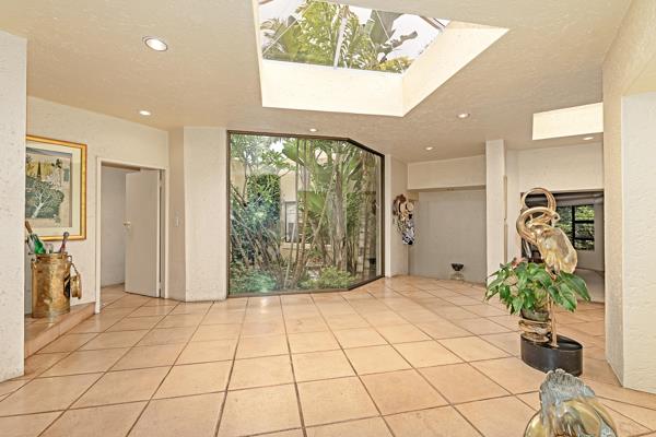 Step into a warm and inviting entrance that flows into a bright, breezy home featuring stunning atriums and three generously proportioned living spaces. The reception areas open onto a spacious patio that overlooks an impeccably maintained garden and sparkling poolperfect for relaxed outdoor entertaining.