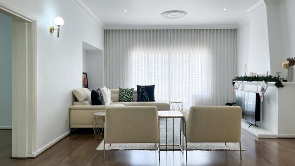 Security is comprehensively addressed with an alarm system, electric fencing, burglar bars, a security gate, and an intercom system. Modern conveniences such as fibre connectivity and a battery inverter are also present, ensuring uninterrupted comfort and connectivity. This property represents a refined opportunity for discerning homeowners seeking elegance and functionality in a prime location.