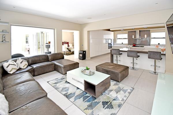 Step into light-filled, open-plan interiors featuring multiple reception areas, including two lounges, a dining space, and a familyTV room.