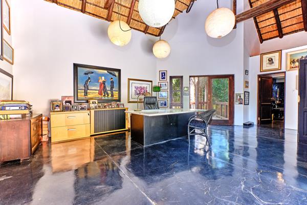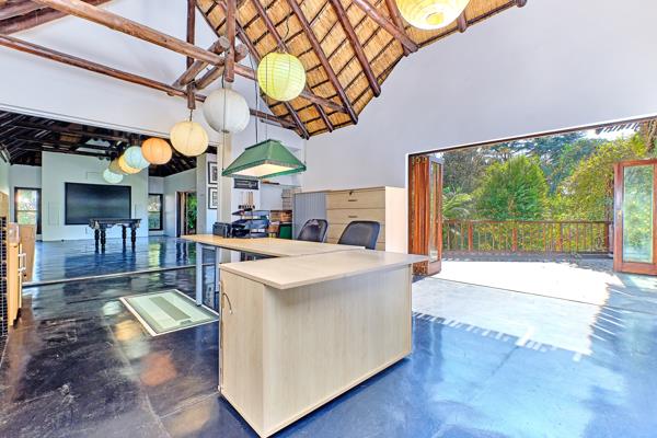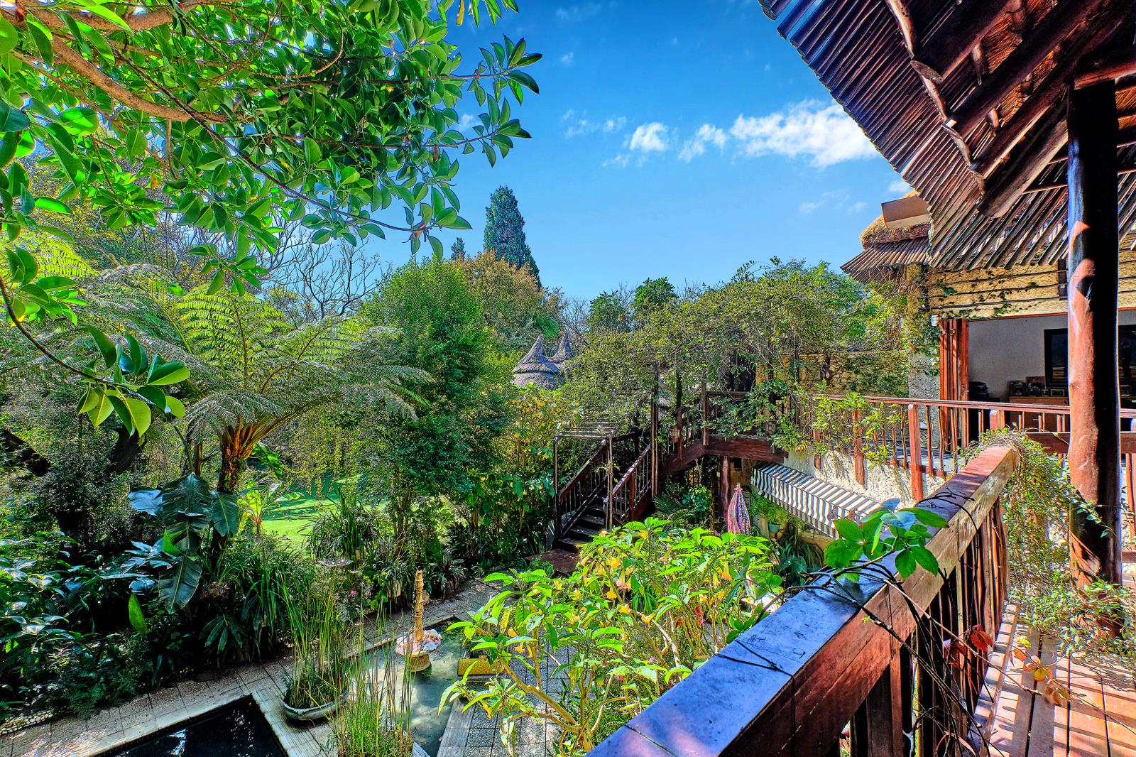 There is a feeling of a private Retreat in this spectacular garden with full borehole support , super lush grounds and majestic trees creating peace and tranquility .
