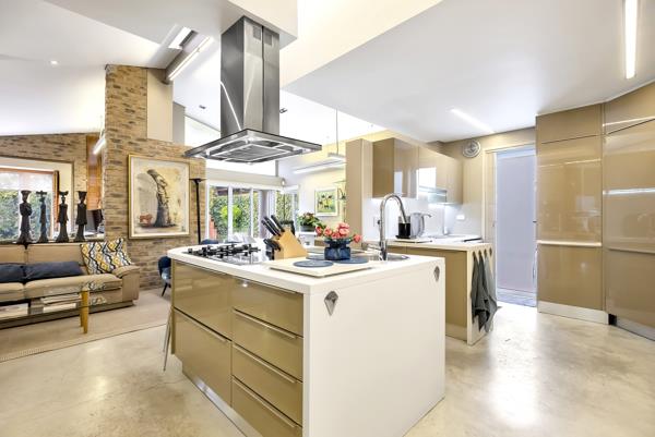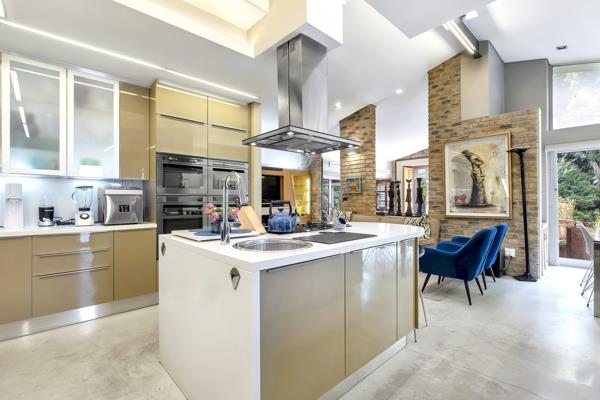 Inside, youll find 3 spacious bedrooms, each with sliding doors that open to the outdoors and built-in cupboards. Two bedrooms are en-suite, offering privacy, comfort, and effortless luxury. The heart of this home is the modern open-plan kitchen, featuring gas and electric appliances, soft-lit cabinetry, exceptional storage, and elegant finishes. It flows seamlessly into the warm TV lounge with a contemporary fireplace, a space designed for both comfort and style. The large dining area opens directly onto the entertainment patio with a built in braai, tranquil garden, and pool, perfect for relaxed weekends and hosting with ease. A second loungereception room also opens to the patio, enhancing the indoor outdoor lifestyle.