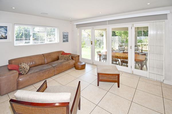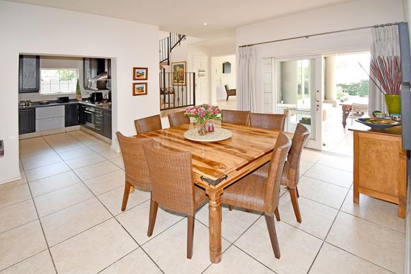 Designed for both relaxed family living and entertaining, the dining room is conveniently positioned adjacent to the granite-topped kitchen, which features ample cabinetry and a gas hob. The TV lounge also flows to the patio and garden, creating an ideal indooroutdoor lifestyle.