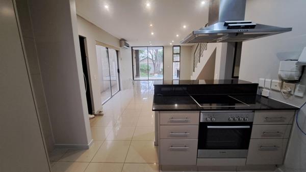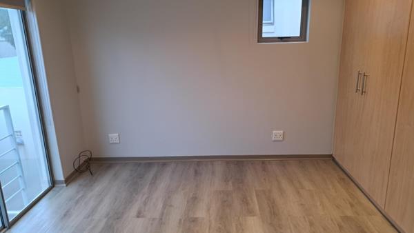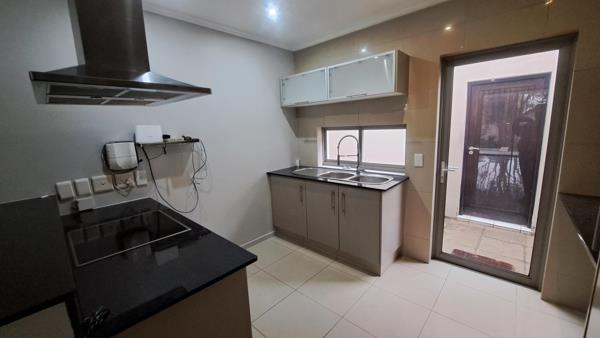 Upstairs, both bedrooms feature laminate flooring, built-in cupboards, and sliding doors that flow seamlessly perfect for morning coffee or quiet reflection. The main suite opens to an elevated open-air patio, while stainless-steel balustrades add a chic, contemporary flair throughout. Downstairs, the open-plan living space showcases large glossy porcelain tiles, a modern kitchen with glass-top stove, under-counter oven, and generous work surfaces, ideal for easy entertaining. The airy lounge extends through sliding doors to a secluded private garden featuring a sparkling splash pool, creating your own tranquil retreat in the city. Every element has been crafted with style and comfort in mind, from the expansive windows drawing in natural light to the clean, modern lines that define this exclusive address. Experience the best of urban luxury, privacy, and contemporary design, right in the heart of Parkmore.