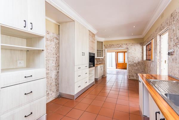Spacious and stylish kitchen has ample cupboard space with a gas hob.