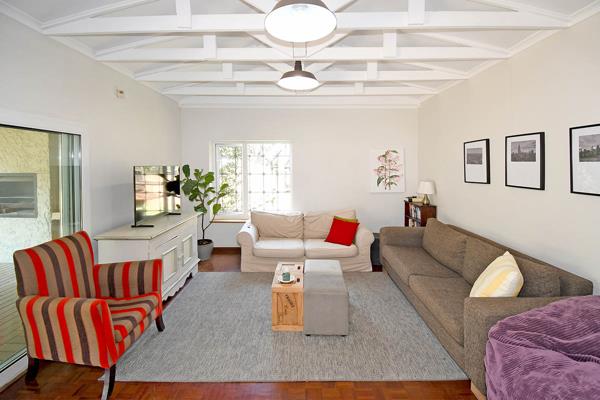 The lounge flows onto a covered patio, perfect for entertaining, overlooking the garden and sparkling, secured pool.