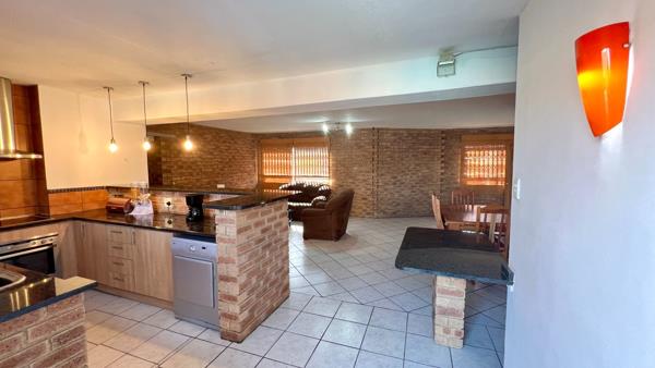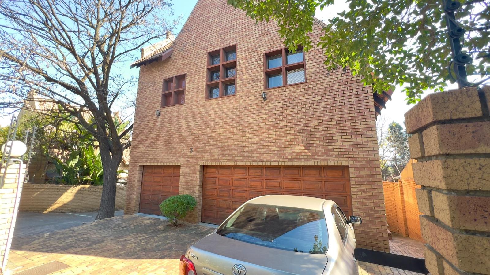 In a very small intimate low maintenance face brick complex this apartment has its own motor gates with two parking bays in front of its double motorised garages. There is direct access to the apartment from the garage or from its own private entrance with door to lock for guests with one staircase only to this apartment taking you to the upstairs front door to the apartment. Once inside you are greeted by a stunning big open plan lifestyle with the dining room, lounge and kitchen easily flowing into one another for easy modern living. The lovely black granite top kitchen is separated from the reception areas by a serving counter with a lovely separate black granite breakfast nook next to the dining area. The lounge is well sized and interactive and interchangeable with where the dining area is. One could use the breakfast nook for meals and use the dining area as a home office or a Tv room area depending on your lifestyle and needs. The breakfast nook would also be a great work strong home space. A glass door leads out from next to the kitchen onto a long balcony covered with a glass dome and from which there are lovely views over the forested suburbs towards Randburg. In the closed off private passage there are three lovely spacious sunny bedrooms. The master bedroom with views offers a dressing room and private en-suite bathroom. A second passage bathroom with bath and shower services the other two bedrooms and day guests. Good security. Two guest parkings. Fibre ready.